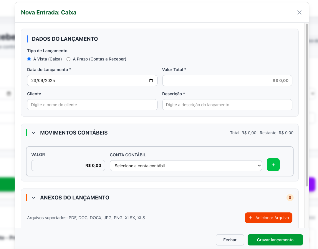 O relatório vai ser simples, vai ser uma listagem de todos os lançamento liquidados ou à vista lançados na conta financeira