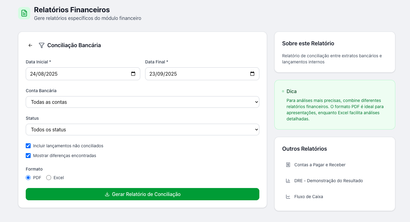 AbertaFinanceiro: Relatório de Conciliação Bancária